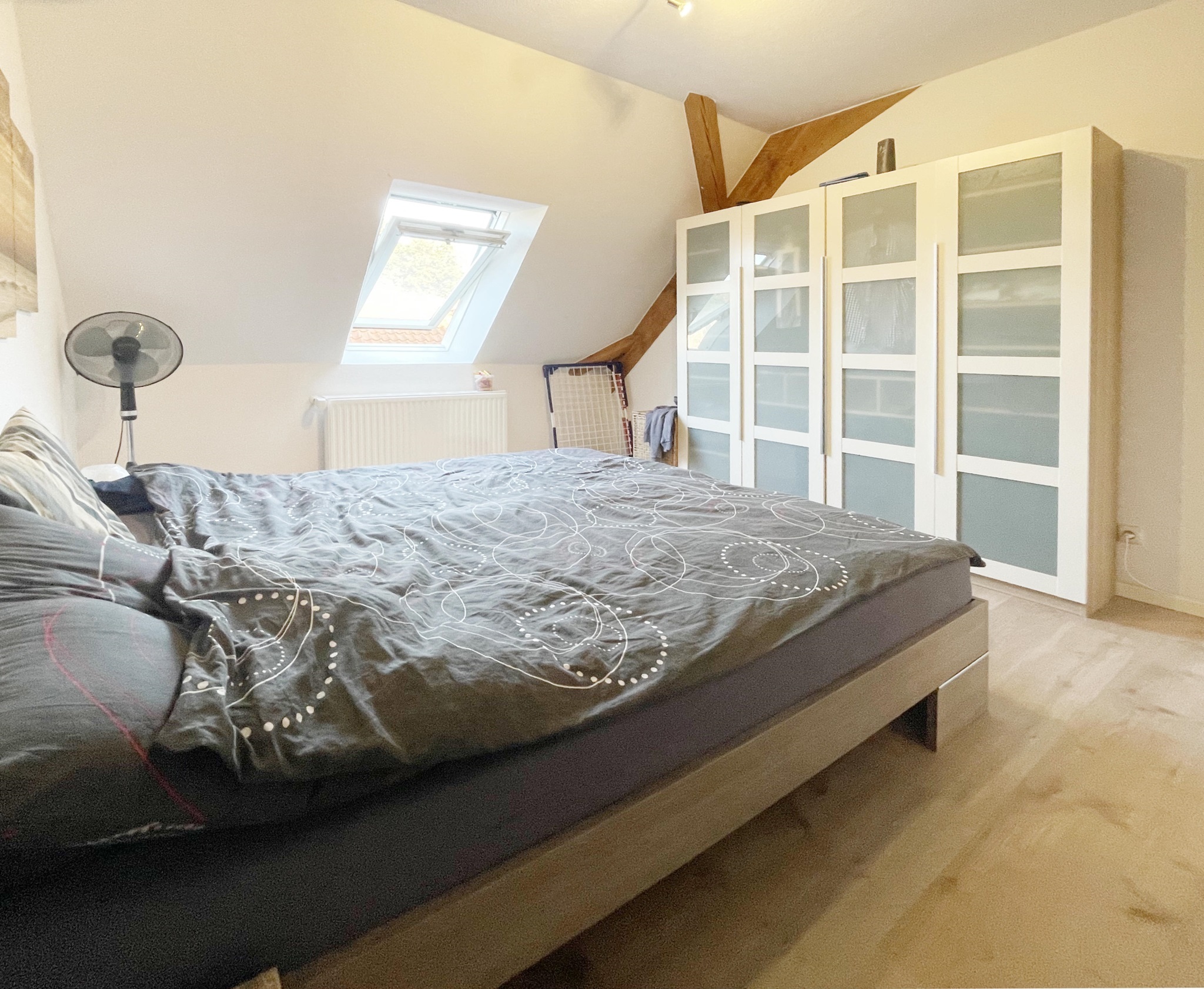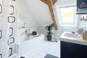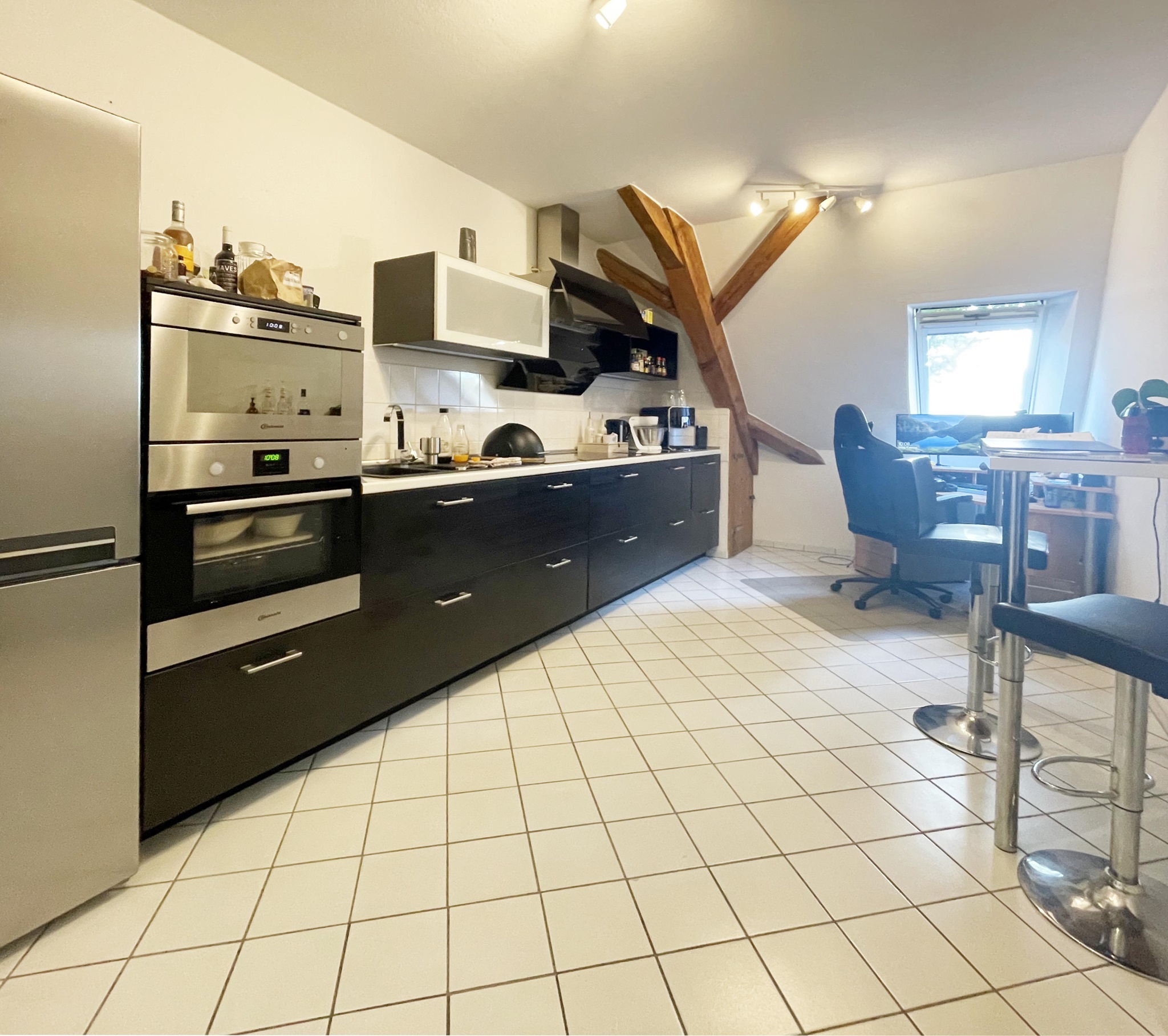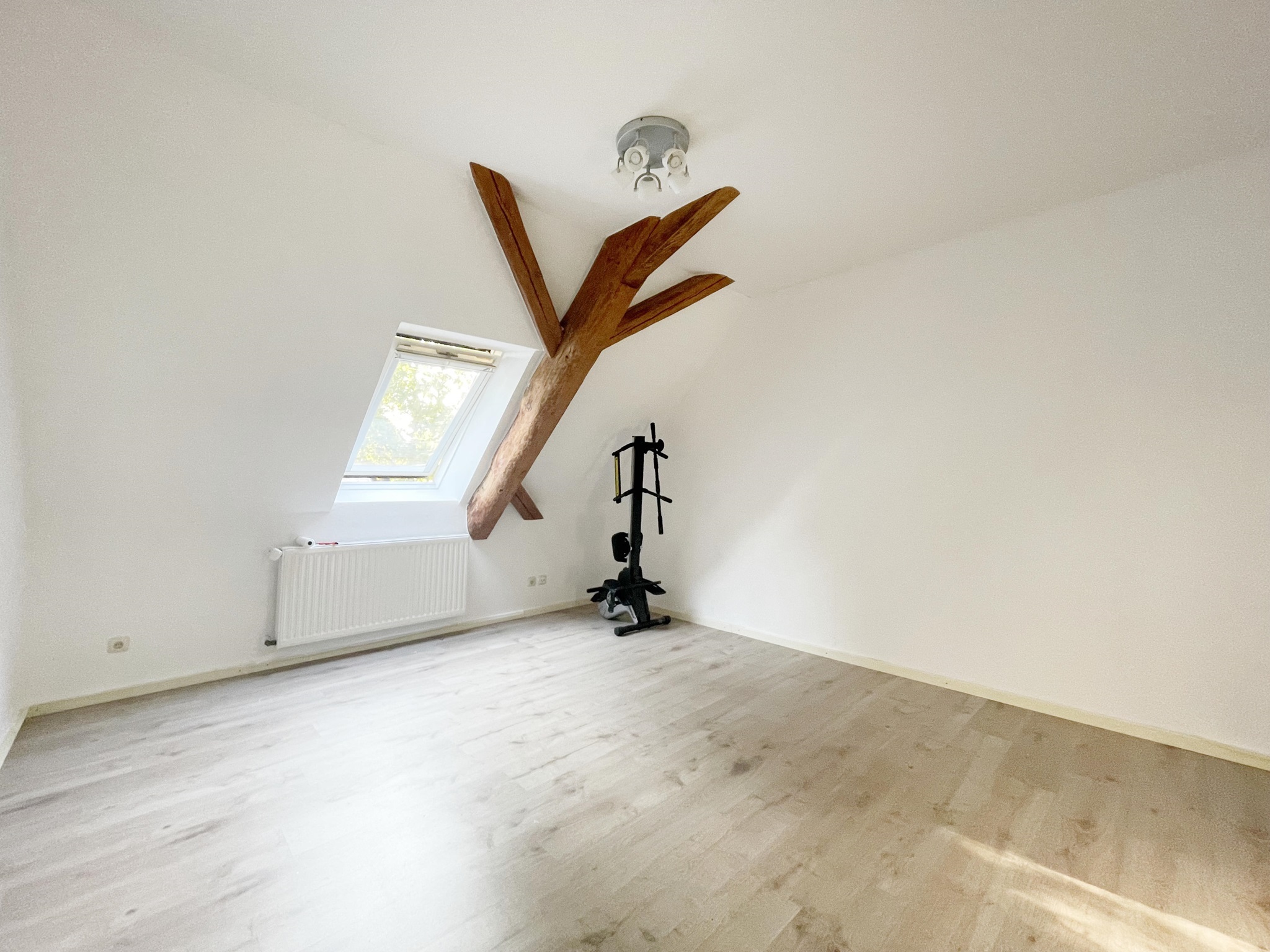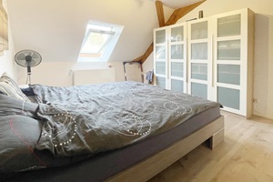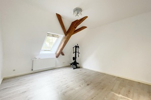 Hier erwartet Sie ein außergewöhnliches Wohnerlebnis zur Miete. In einem historischen Fachwerkgebäude aus dem 19. Jahrhundert befindet sich die angebotene Mietwohnung im Obergeschoss. Bereits im ordentlichen und einladenden Treppenhaus wurde das Fachwerk freigelegt und bildet einen harmonischen Kontrast zu den hellen Wänden und Bodenfliesen. Hier haben Sie einen separaten Zugang zur schön geschnittenen 3-Zimmer-Wohnung über die innenliegende Naturholztreppe.