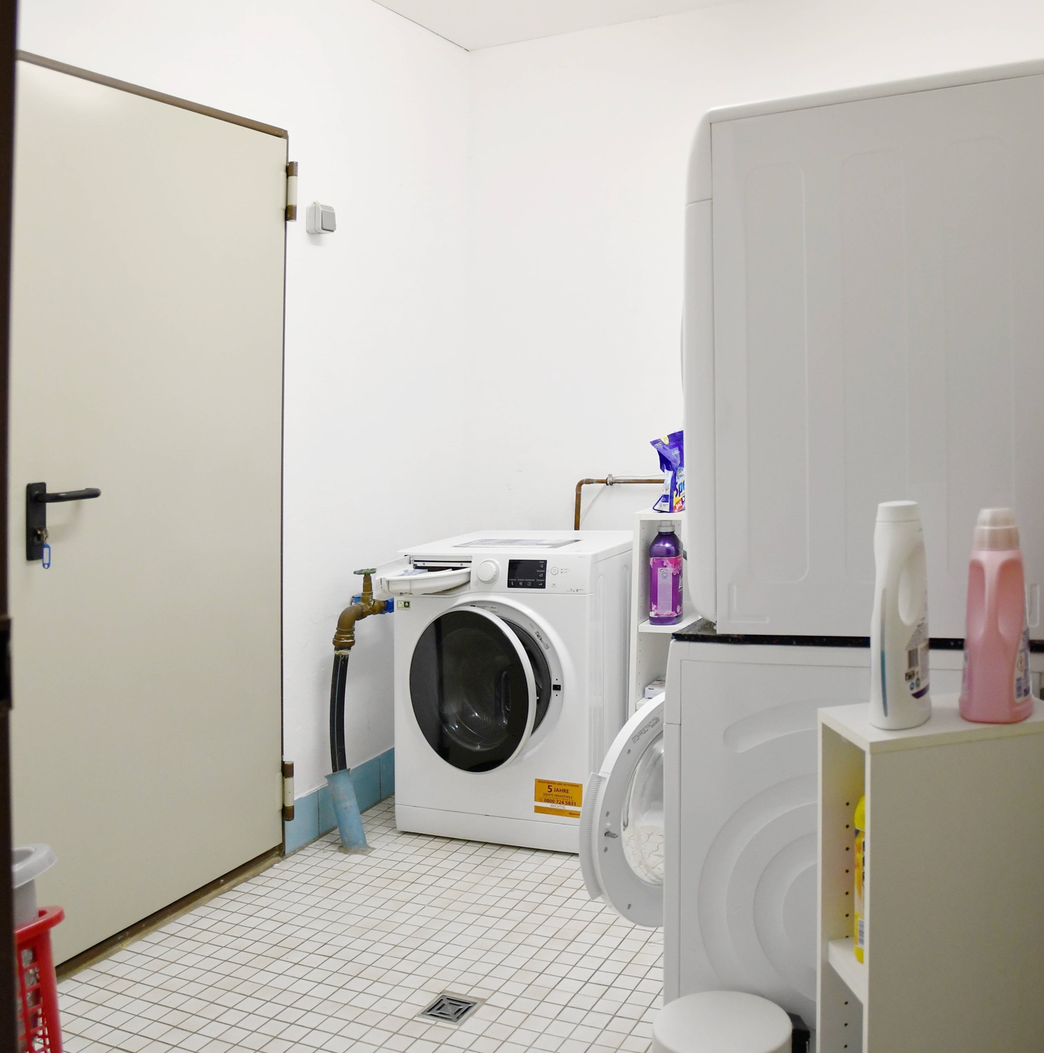 Zur Wohnung gehört ein Pkw-Stellplatz auf dem Hof und es gibt einen Gemeinschaftsraum für Fahrräder. Insgesamt ist die Wohnung in einem gepflegten Zustand und lässt mit hohen Decken, schönen Fenstern und glatt verputzten Wänden keine Wohnwünsche offen.