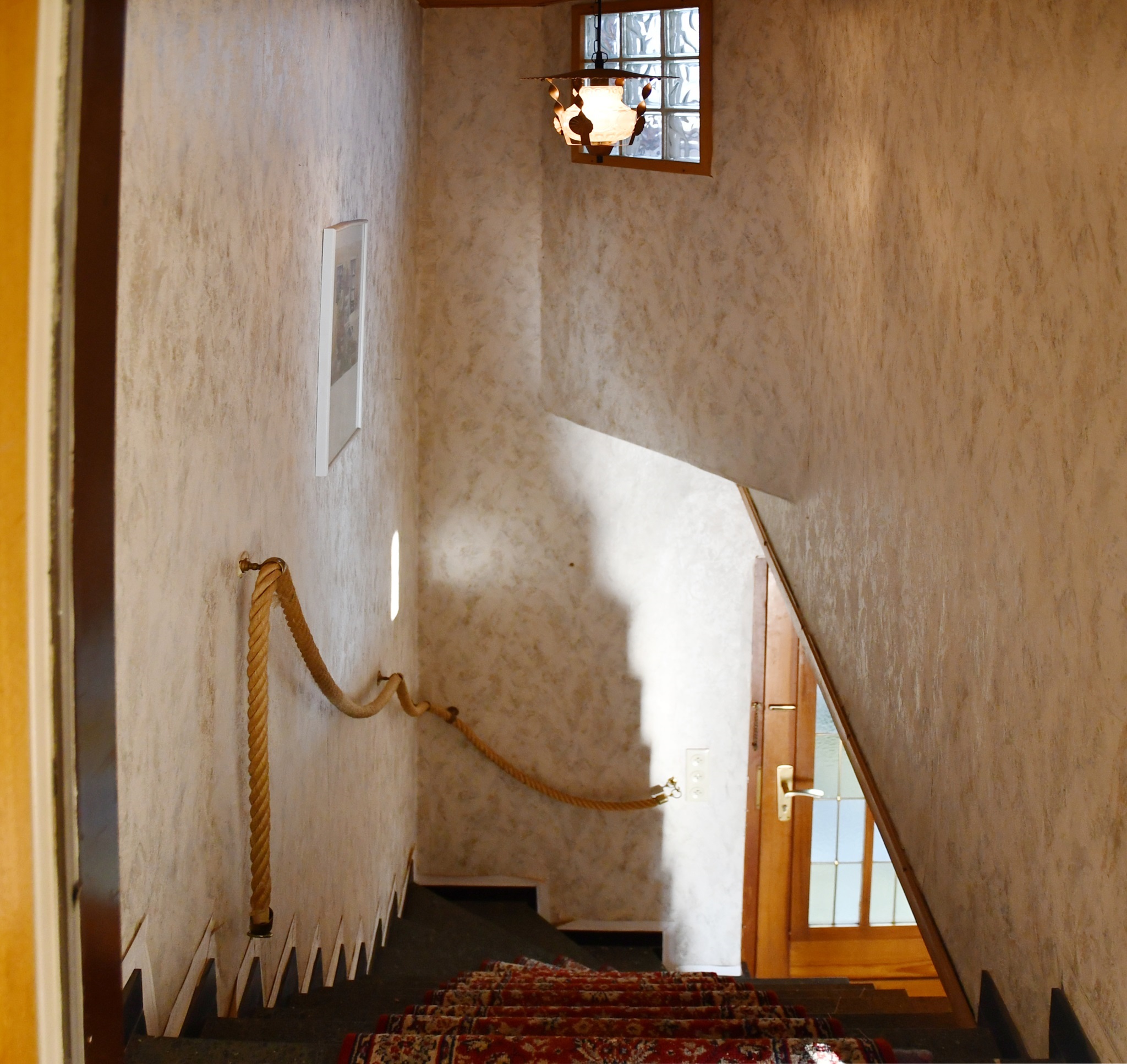 Das Haus entstand 1964 in einer regionaltypischen Bauweise und bietet eben genau diese Vorzüge, denn im Erdgeschoss gibt es zwei Wohnbereiche: das eigentliche Wohnzimmer mit Echtholz-Parkett und das an die Küche anschließende lauschige und wohnliche Esszimmer mit Blick ins Kaminzimmer und schönen Blick in den Garten. Vom Esstisch aus haben Sie einen Blick auf den Kamin, was in den kühlen Monaten für eine besonders behagliche Stimmung sorgt. Es schließt der beheizbare Wintergarten an, welcher ganzjährig ein Ort der Erholung und Ruhe bildet. Von hier erfolgt der Zugang zum geschützten Garten, der mit seinen 986 Quadratmetern (gesamtes Grundstück) nach den eigenen Vorstellungen umgestaltet werden kann. Im Erdgeschoss gehört zum Wohnangebot das Schlafzimmer mit Zugang zur eigenen Sauna und dem Sauna-Vorbereich mit Dusche und Zugang zur großen Süd-Terrasse und dem Außen-Whirlpool (älteres Modell). Somit können Sie sich nach dem Saunagang im Garten abkühlen. Zudem gibt es auf dieser Etage ein weiteres Zimmer und das moderne Tageslicht-Badezimmer mit Badewanne unter dem Fenster, modernen Fliesen und gepflegten Armaturen. Über das helle und freundliche Treppenhaus erreichen Sie die zweite (abschließbare) Wohnebene mit lichterfüllten Räumen, Dachschrägen und großem Balkon. Es gibt drei Zimmer, eine Küche und ein modernes Tageslicht-Wannenbadezimmer, welche idealerweise jeweils einzeln vom Flur abgehen. Von dem größten der drei Zimmer haben Sie einen Zugang zum Balkon. Er geht über die gesamte Hausbreite und liegt angenehm geschützt. Die beiden kleineren Zimmer besitzen einen funktionalen Schnitt und reichlich Fläche für Schränke.