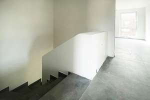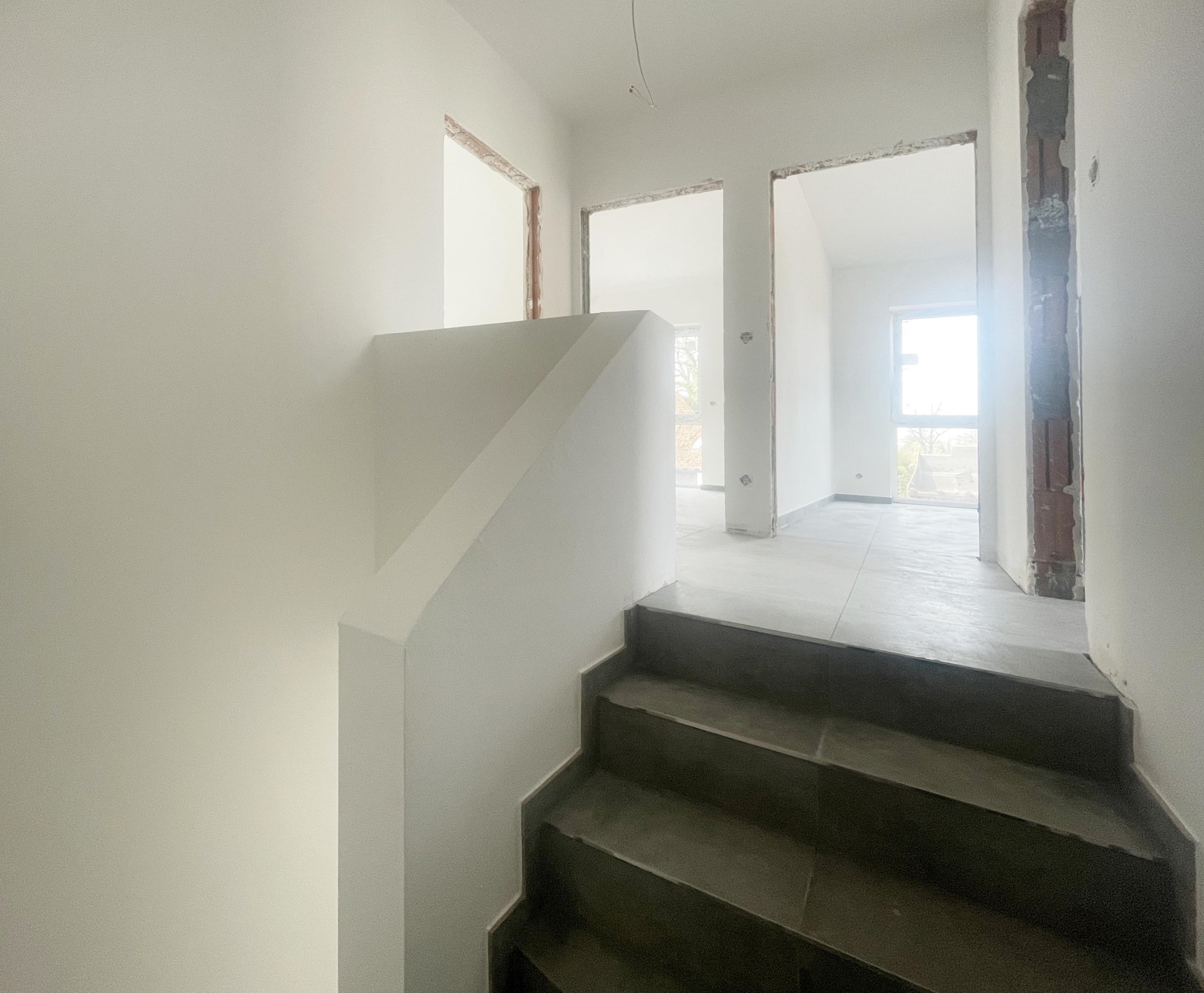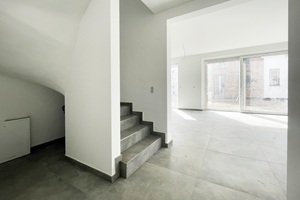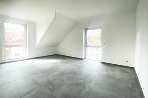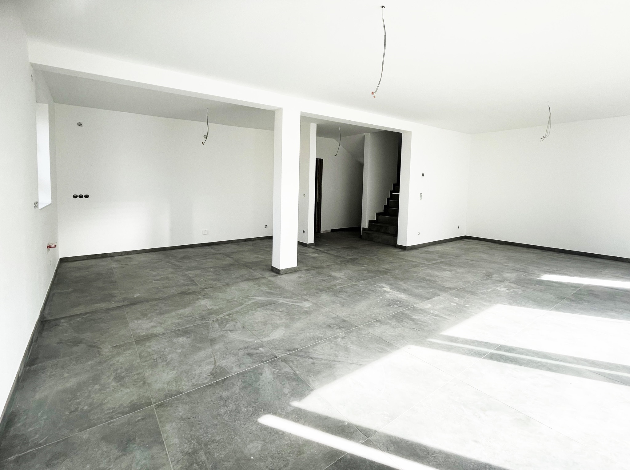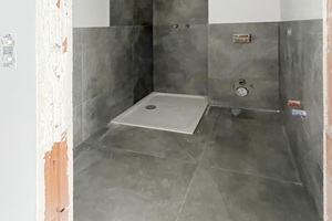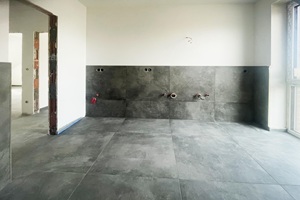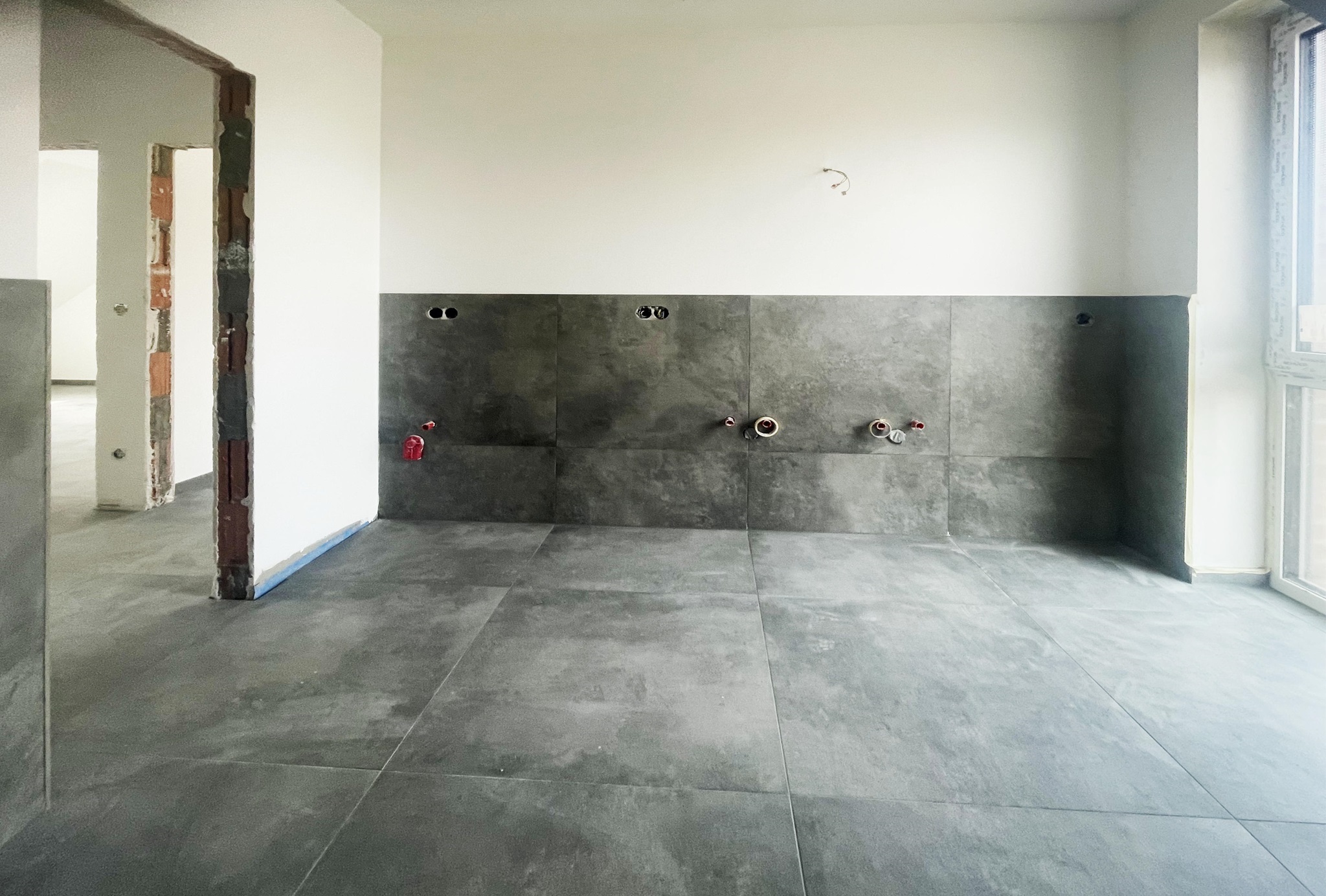 Große Fenster, Klinker- und helle Putzfassaden charakterisieren den 1-geschossigen Wohntraum. Highlight im Erdgeschoss ist der offene Wohn-, Ess- und Küchenbereich mit seinen bodentiefen Panorama-Schiebefenstern und dem Zugang zur Terrasse. Alles atmet Licht und Raum, denn der Wohnraum ist idealerweise nach Süden ausgerichtet. Somit genießen Sie ein lichtdurchflutetes Ambiente und ein loftartiges Ambiente. Den modernen Look unterstreichen die anthrazitfarbenen großen Bodenfliesen - sie wurden im ganzen Haus verlegt und schaffen einen weiträumigen Eindruck. Sie haben ausreichend Platz für eine große Sitzlandschaft und einen Esstisch. Für den Einbau einer Einbauküche sind alle Anschlüsse und auch die Wandfliesen bereits vorhanden - der Mieter muss sich eine Küche selbst einbauen lassen.