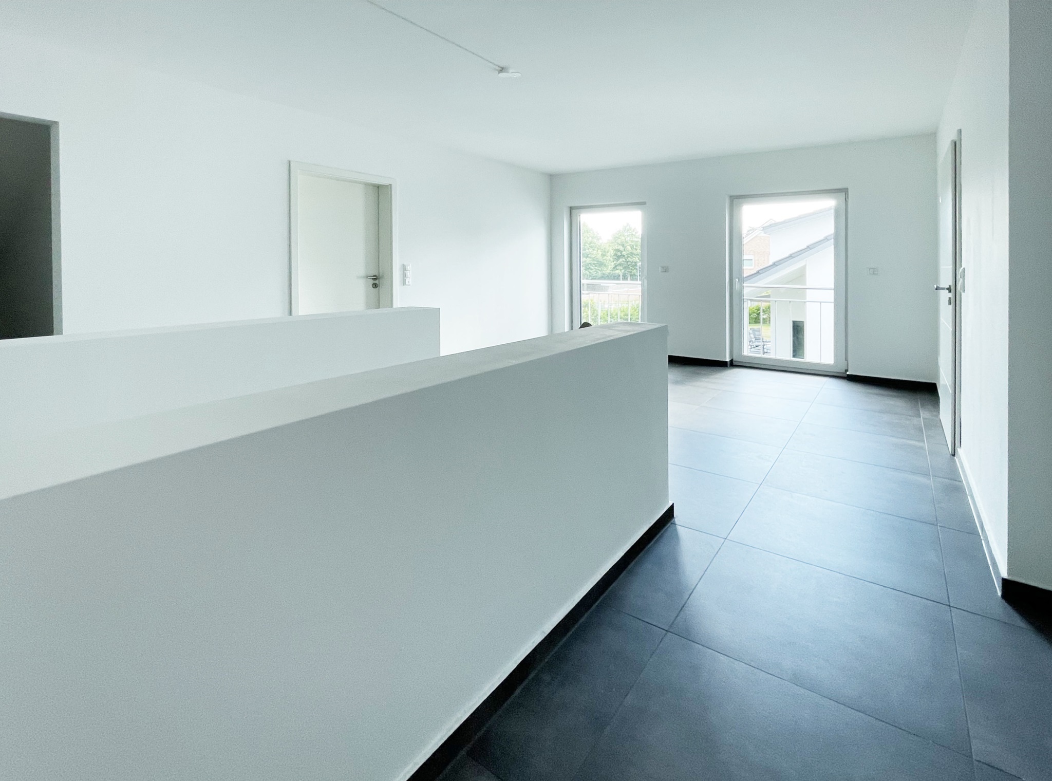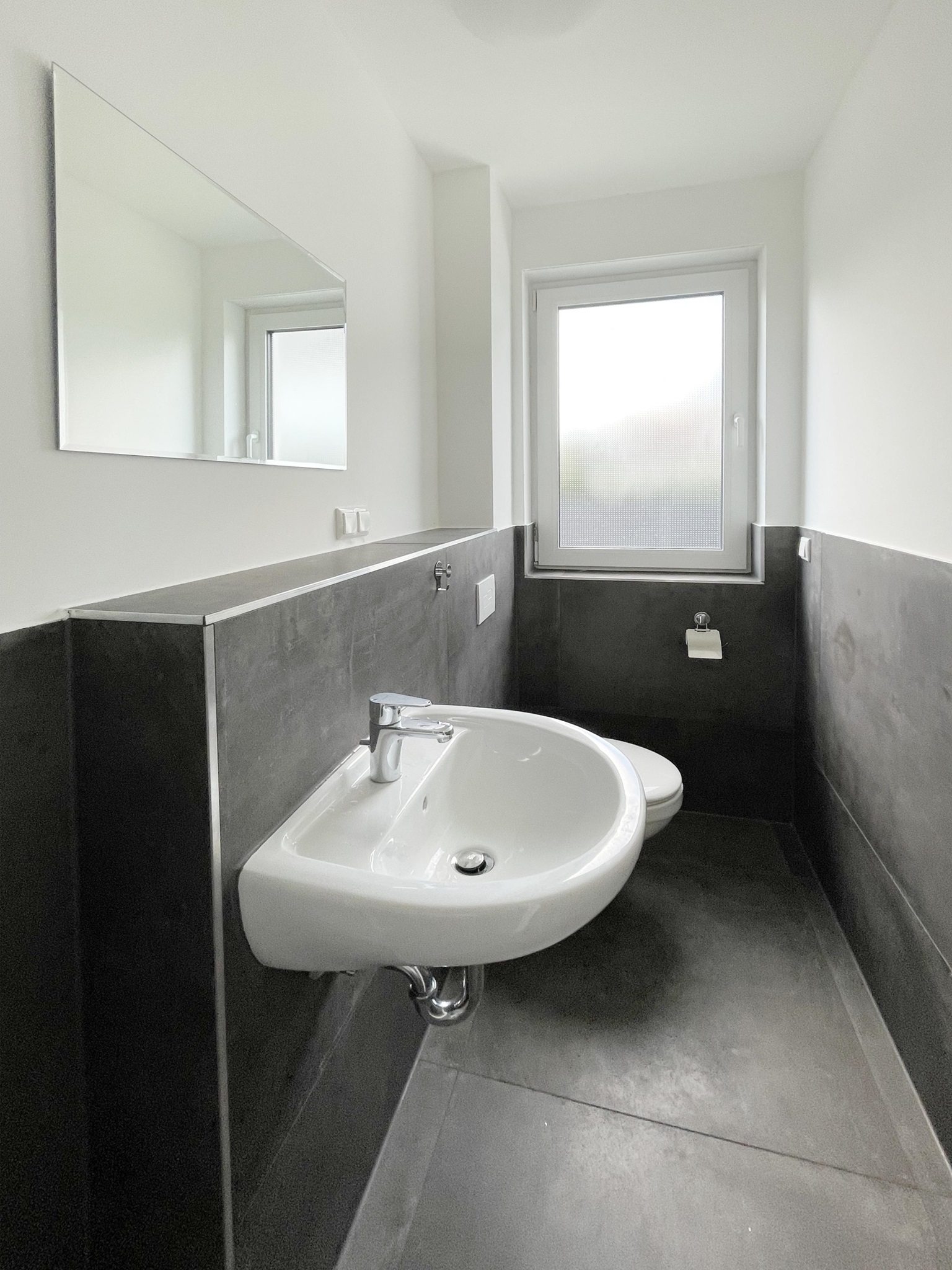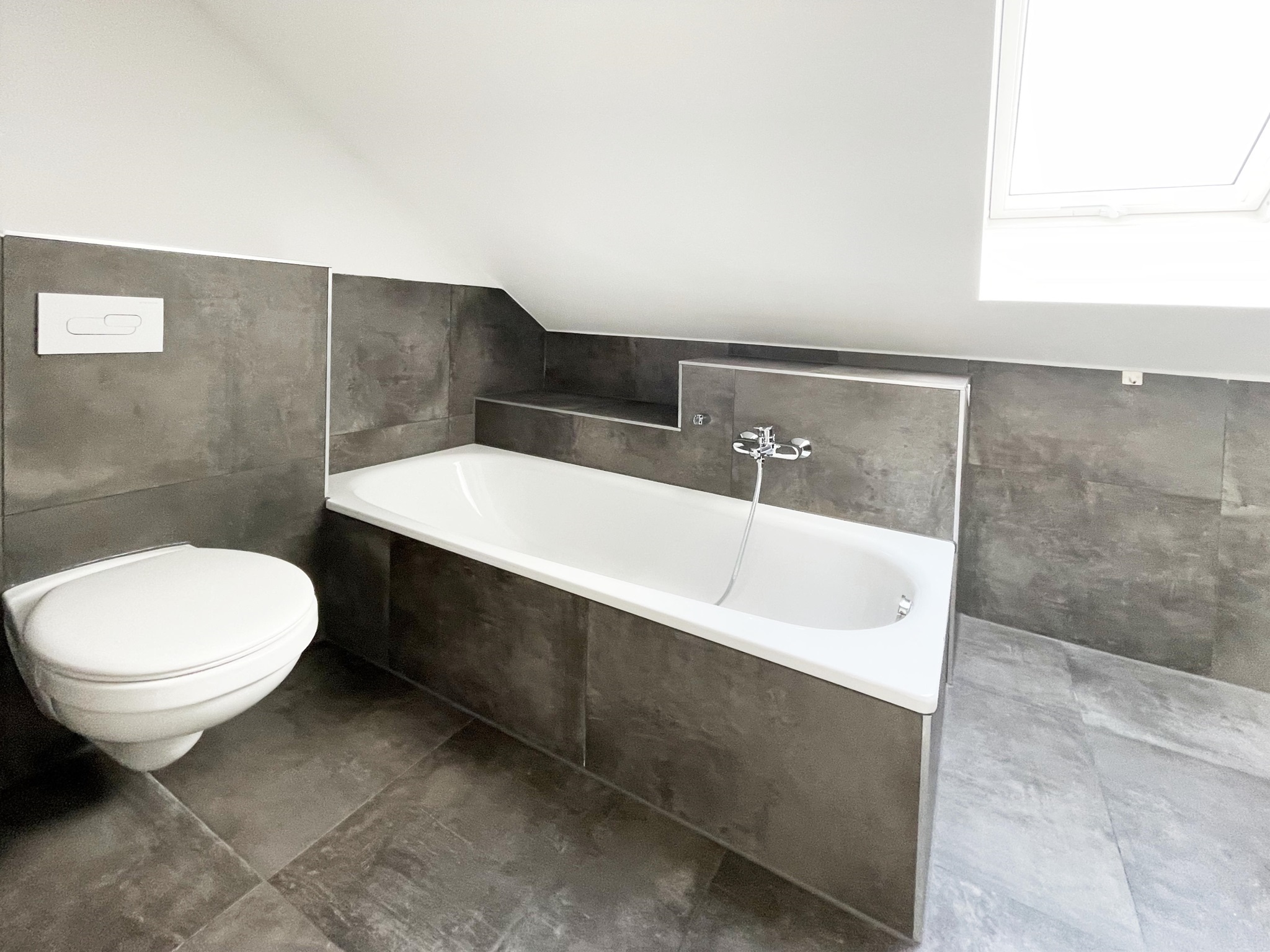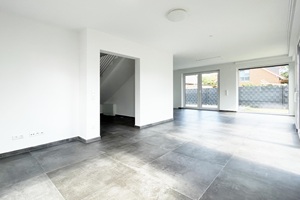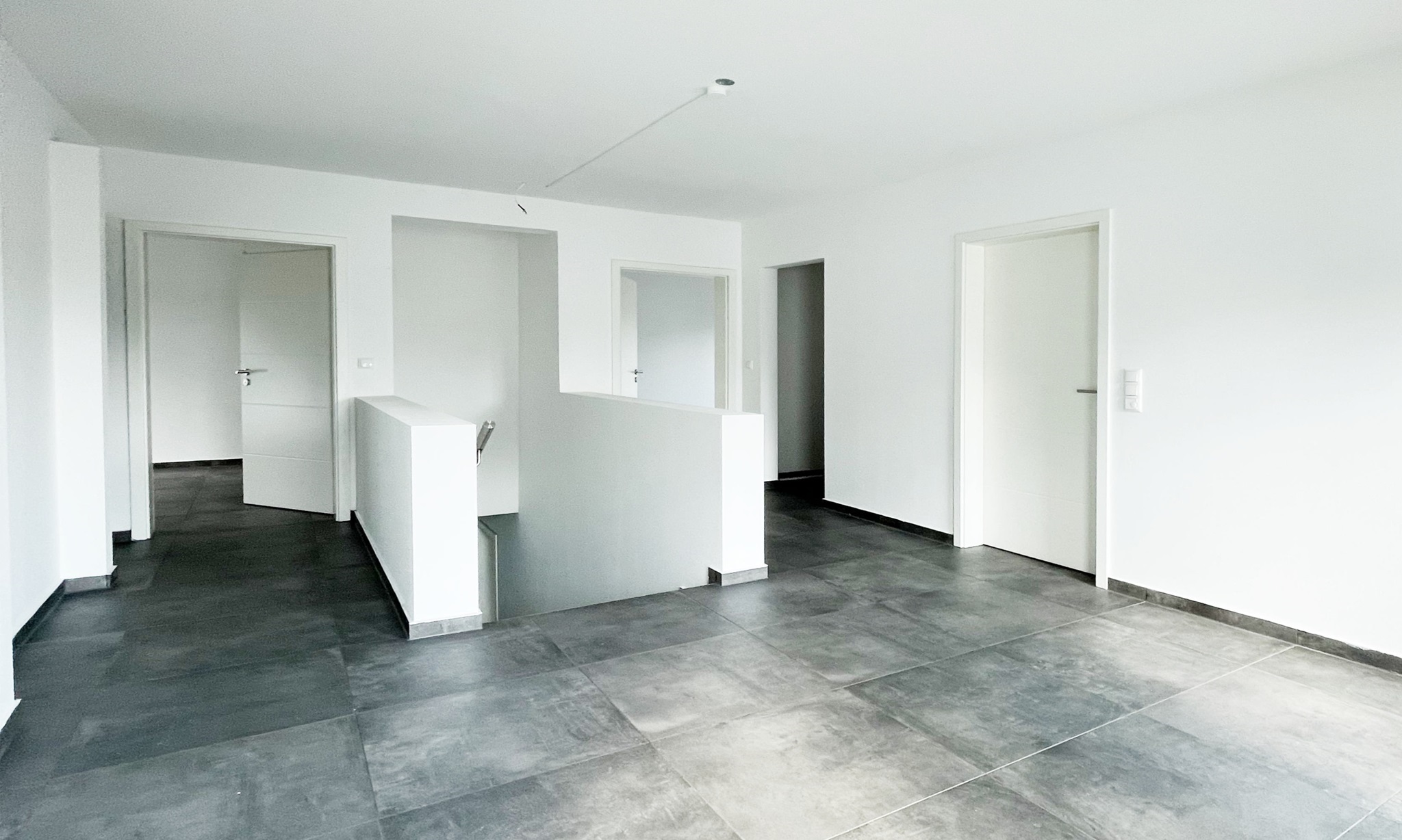 Im Erdgeschoss gelangen Sie vom freundlichen und hellen Eingangsbereich in den großzügigen Wohn-/Essbereich, der durch bodentiefe Fenster zur Terrasse und zum Garten hin zum Verweilen einlädt. Seitlich haben Sie die offene Küche mit einer hochwertigen Ausstattung die vom Vormieter für eine Abstandszahlung von 2.000 € übernommen werden kann. Die L-förmige Küche im modernen Look besitzt einen Backofen, ein Cerankochfeld, eine Dunstabzugshaube, Oberschränke und eine Spülmaschine. Reichlich Stauraum und Arbeitsfläche lassen keine Wünsche offen. Der anschließende Wohnbereich bietet Platz für einen Esstisch und eine gemütliche Sitzgruppe. Im Erdgeschoss haben Sie außerdem ein Gäste-WC und ein Gästezimmer oder Büro. Über das freundliche Treppenhaus gelangen Sie in das Obergeschoss, wo Sie neben dem modern ausgestatteten Familienbad sowohl zwei Kinderzimmer als auch das ruhige Elternschlafzimmer vorfinden. Das Tageslicht-Badezimmer verfügt über Badewanne und eine bodengleiche Dusche, Waschbecken und stilvolle Armaturen.