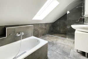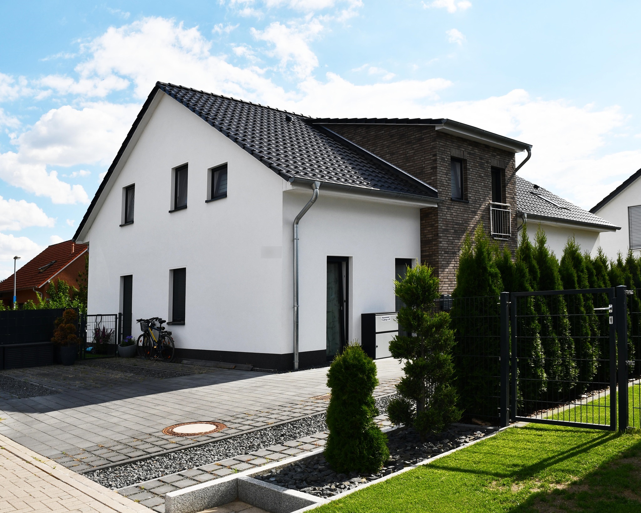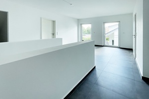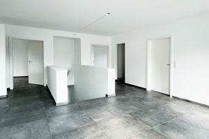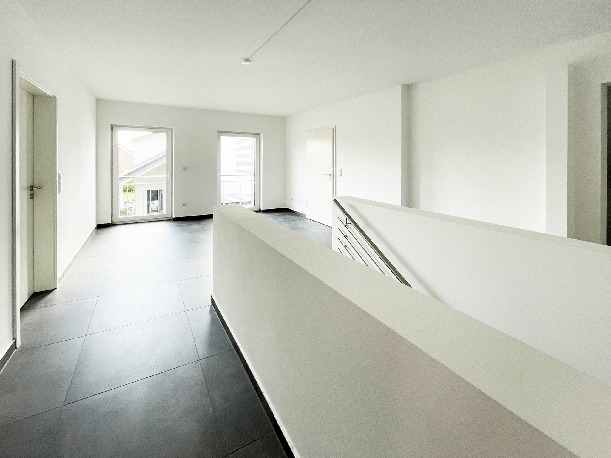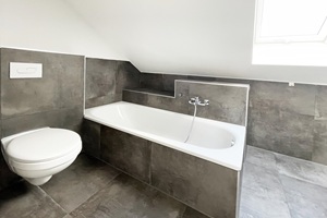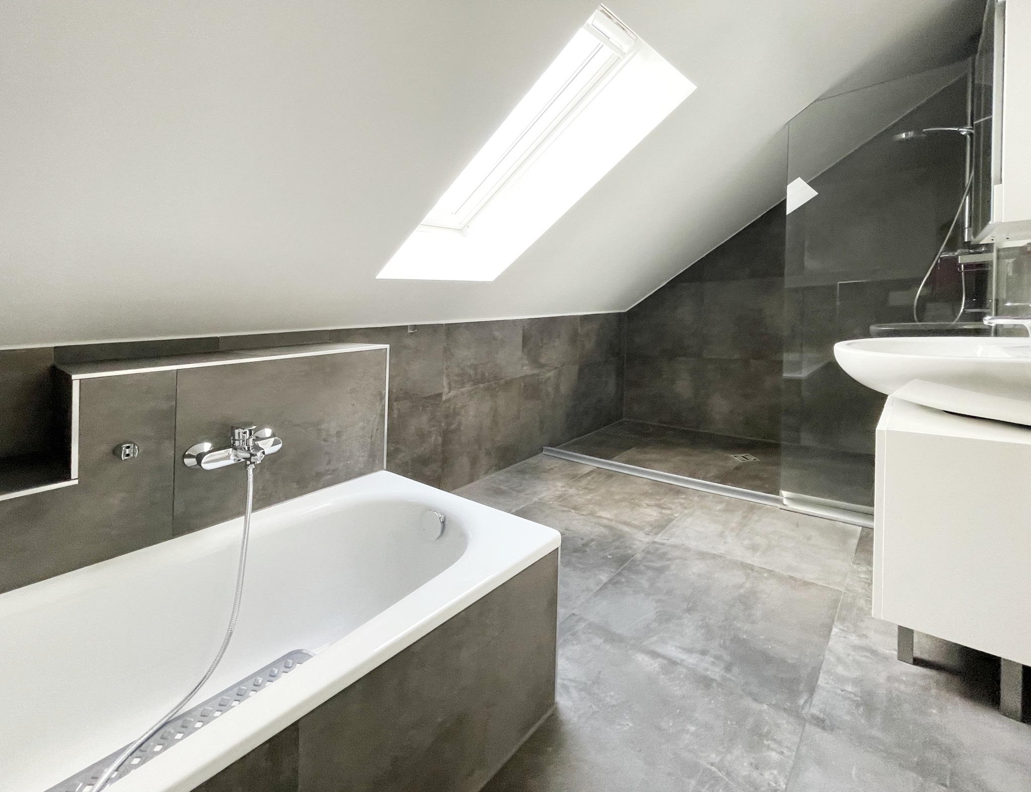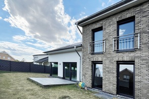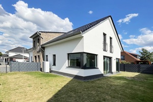 Im Erdgeschoss gelangen Sie vom freundlichen und hellen Eingangsbereich in den großzügigen Wohn-/Essbereich, der durch bodentiefe Fenster zur Terrasse und zum Garten hin zum Verweilen einlädt. Seitlich haben Sie die offene Küche mit einer hochwertigen Ausstattung die vom Vormieter für eine Abstandszahlung von 2.000 € übernommen werden kann. Die L-förmige Küche im modernen Look besitzt einen Backofen, ein Cerankochfeld, eine Dunstabzugshaube, Oberschränke und eine Spülmaschine. Reichlich Stauraum und Arbeitsfläche lassen keine Wünsche offen. Der anschließende Wohnbereich bietet Platz für einen Esstisch und eine gemütliche Sitzgruppe. Im Erdgeschoss haben Sie außerdem ein Gäste-WC und ein Gästezimmer oder Büro. Über das freundliche Treppenhaus gelangen Sie in das Obergeschoss, wo Sie neben dem modern ausgestatteten Familienbad sowohl zwei Kinderzimmer als auch das ruhige Elternschlafzimmer vorfinden. Das Tageslicht-Badezimmer verfügt über Badewanne und eine bodengleiche Dusche, Waschbecken und stilvolle Armaturen.