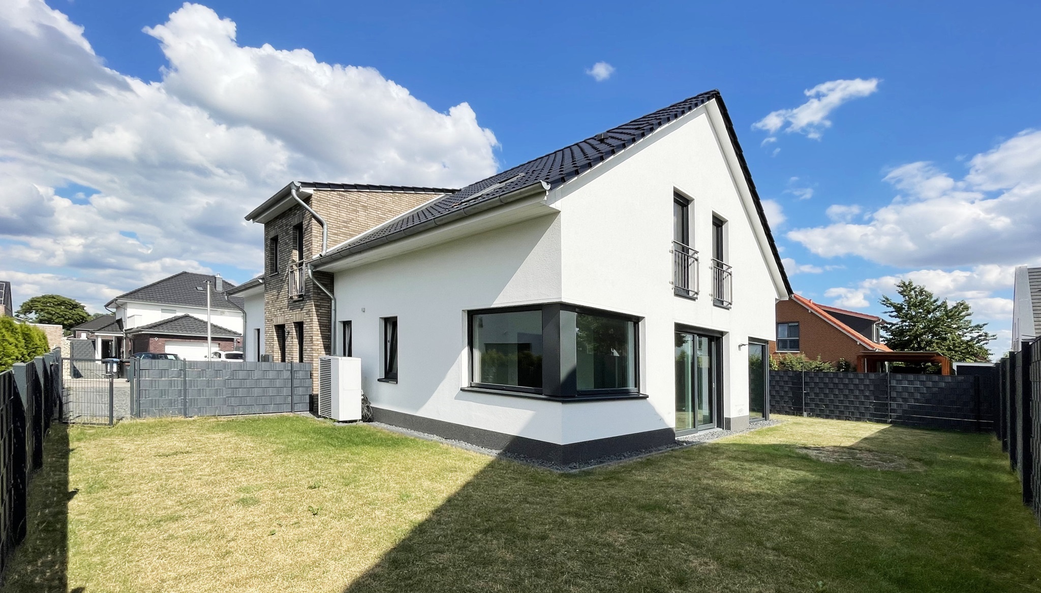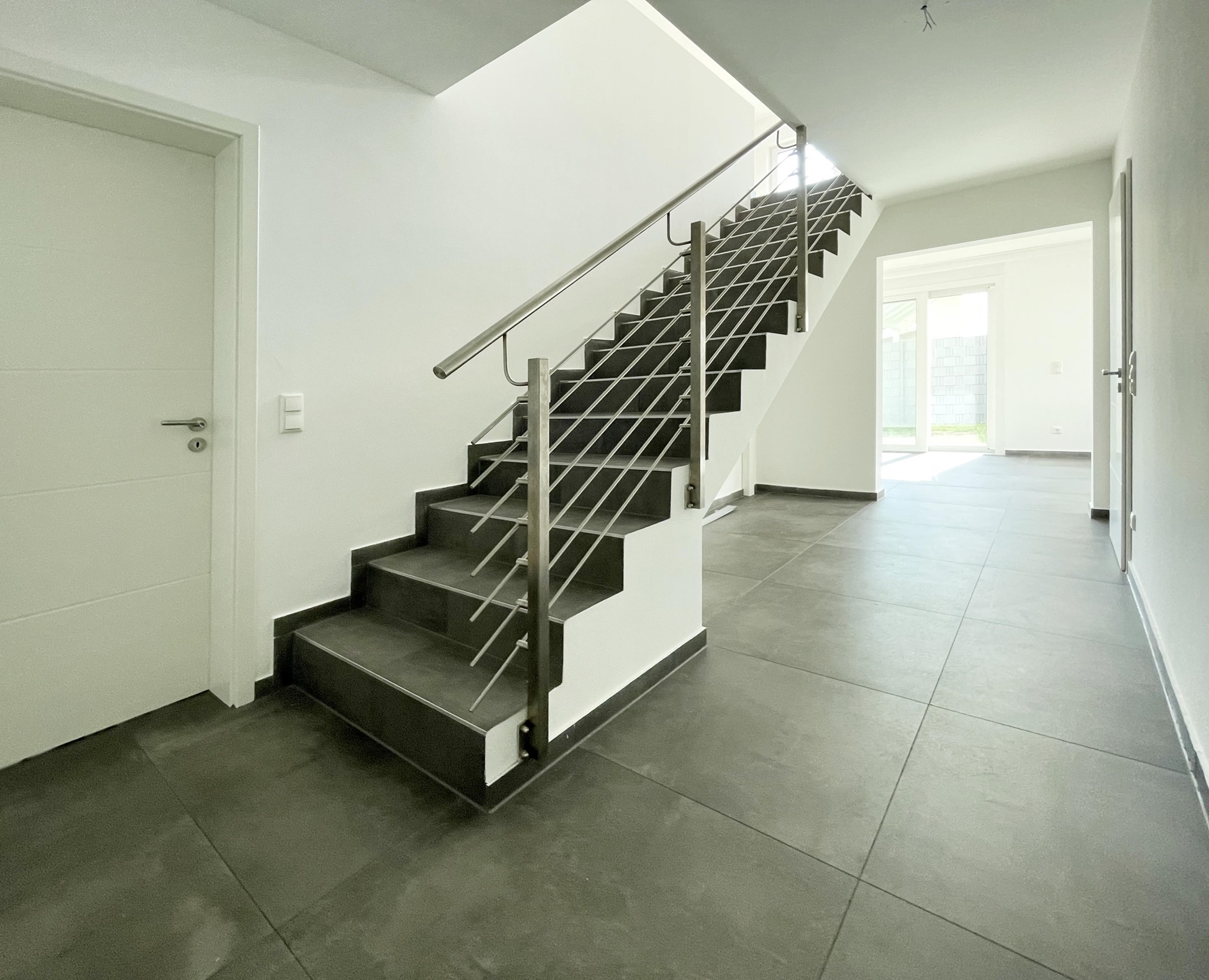 Im gesamten Haus sorgt die Fußbodenheizung für ein angenehmes Wohlfühlklima. In den Räumen wurden pflegeleichte Fliesen verlegt. Es gibt Thermostate in jedem Zimmer. Die isolierverglasten Fenster besitzen elektrische Rollläden. Und im Garten haben Sie eine Außenbeleuchtung sowie einen Wasseranschluss. Eine attraktive Doppelhaushälfte mit Terrasse und Garten, in dem sich Ihre Familie wohlfühlen wird.