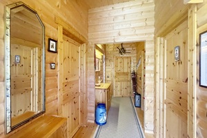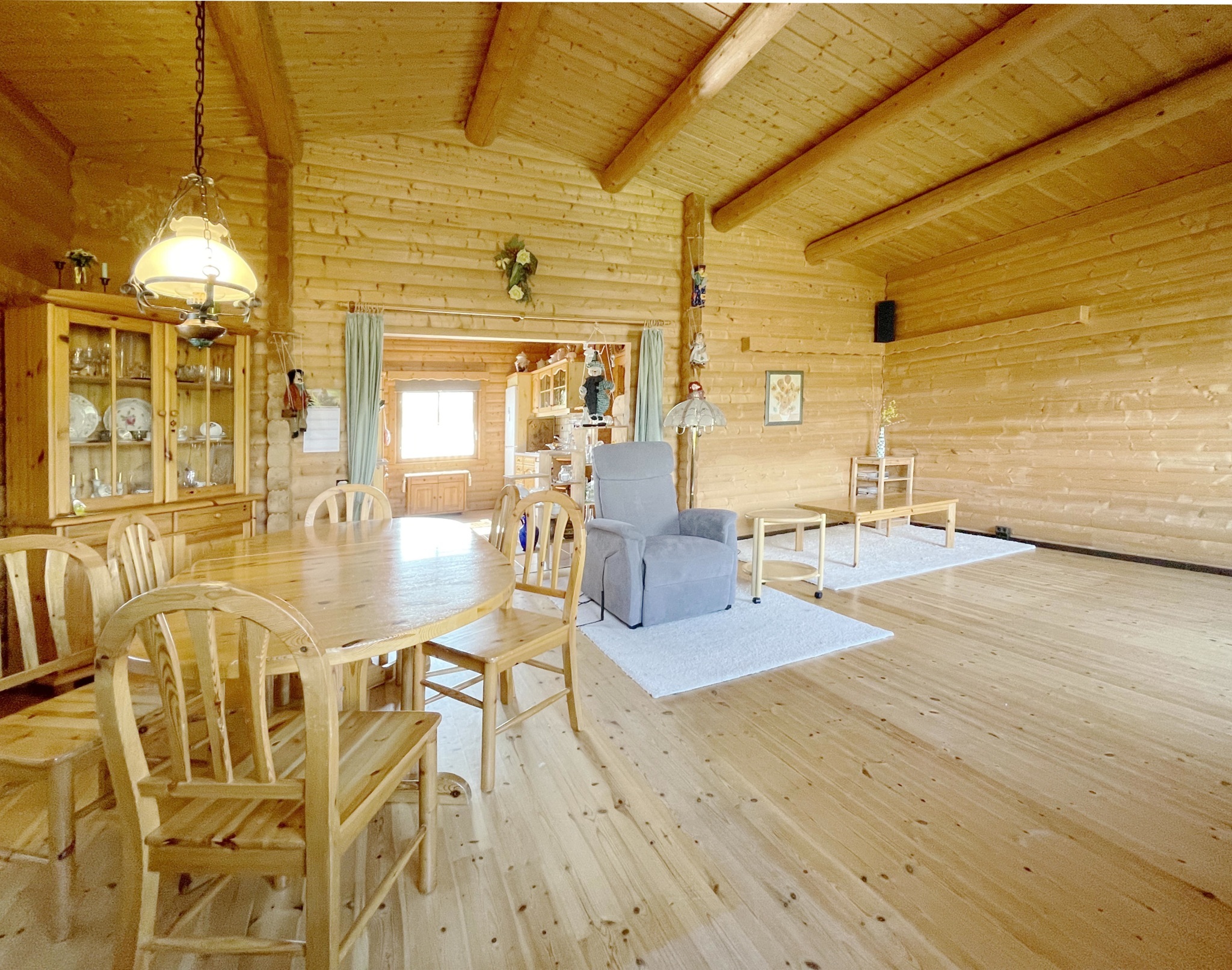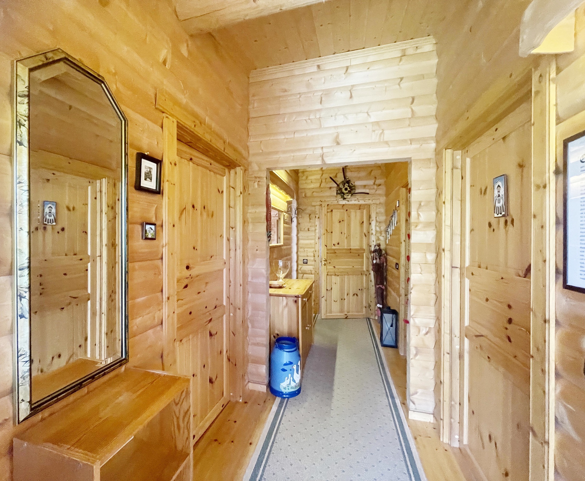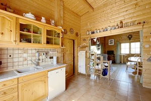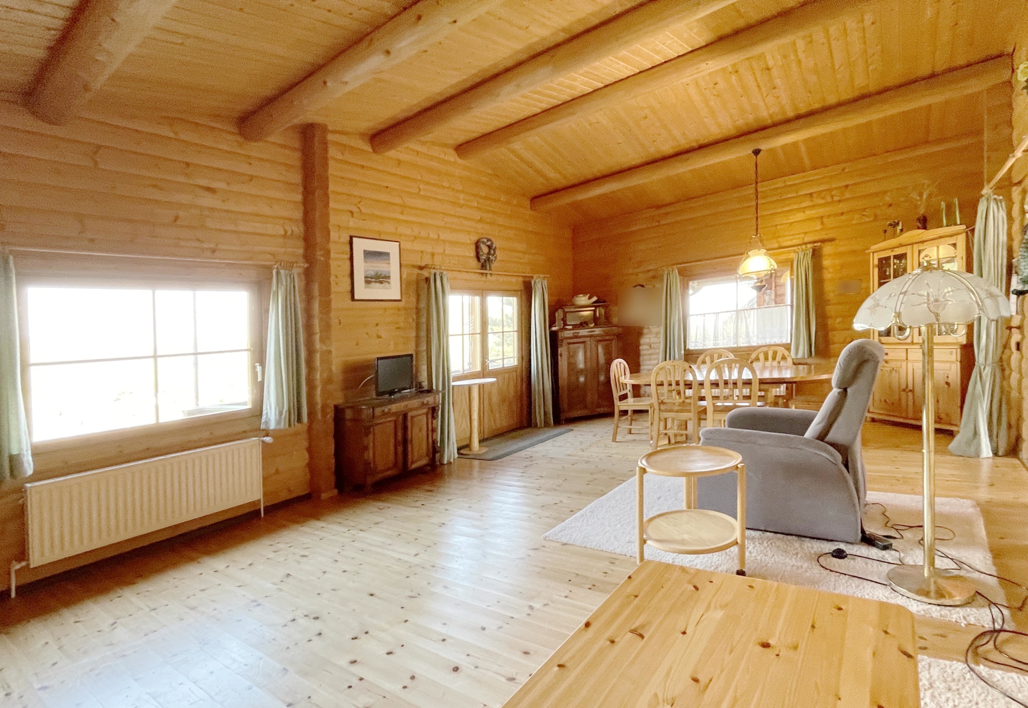 Das in Holzbauweise errichtete Haus umfasst die obere Ebene, während das massive Sockelgeschoss als Einliegerwohnung gebaut wurde. Auf der oberen Ebene empfängt Sie die Schönheit natürlichen Holzes. Ob an den Wänden, an der Decke oder auf dem Boden, stets ist das helle Holz das gestaltende und wohltuende Element. Highlight ist der offene Wohnbereich mit Verbindung zur Küche und Zugang zum großen Balkon und dem seitlichen Wintergarten. Wie bei einem Chalet ist die Holzdecke sichtbar und erreicht am höchsten Punkt fast die doppelte Raumhöhe.