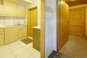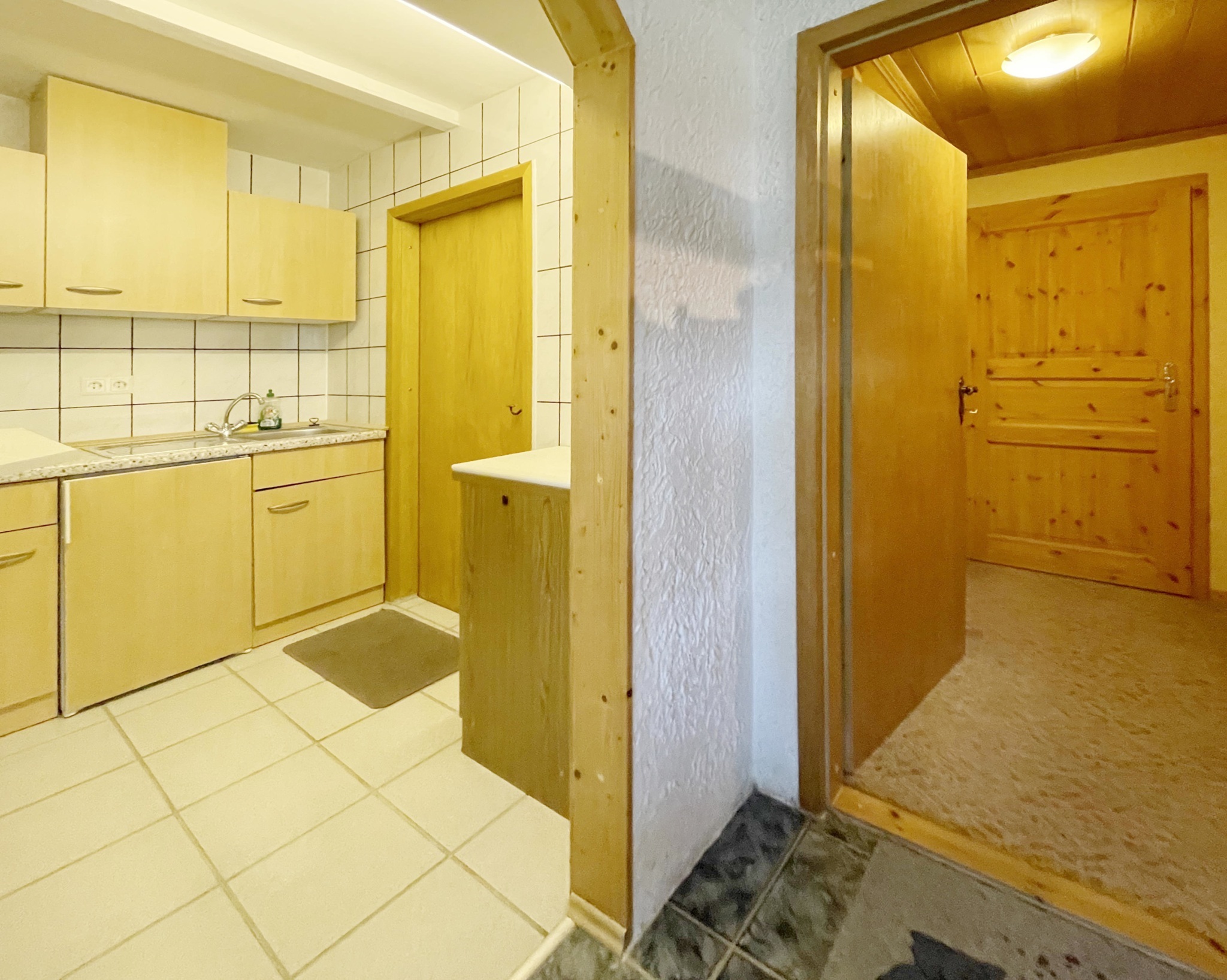 Im Untergeschoss befindet sich die separat von außen zugängliche Einliegerwohnung - mit kleiner Einbauküche, Tageslicht-Badezimmer mit Dusche und Handtuchheizkörper sowie zwei Abstellräumen.