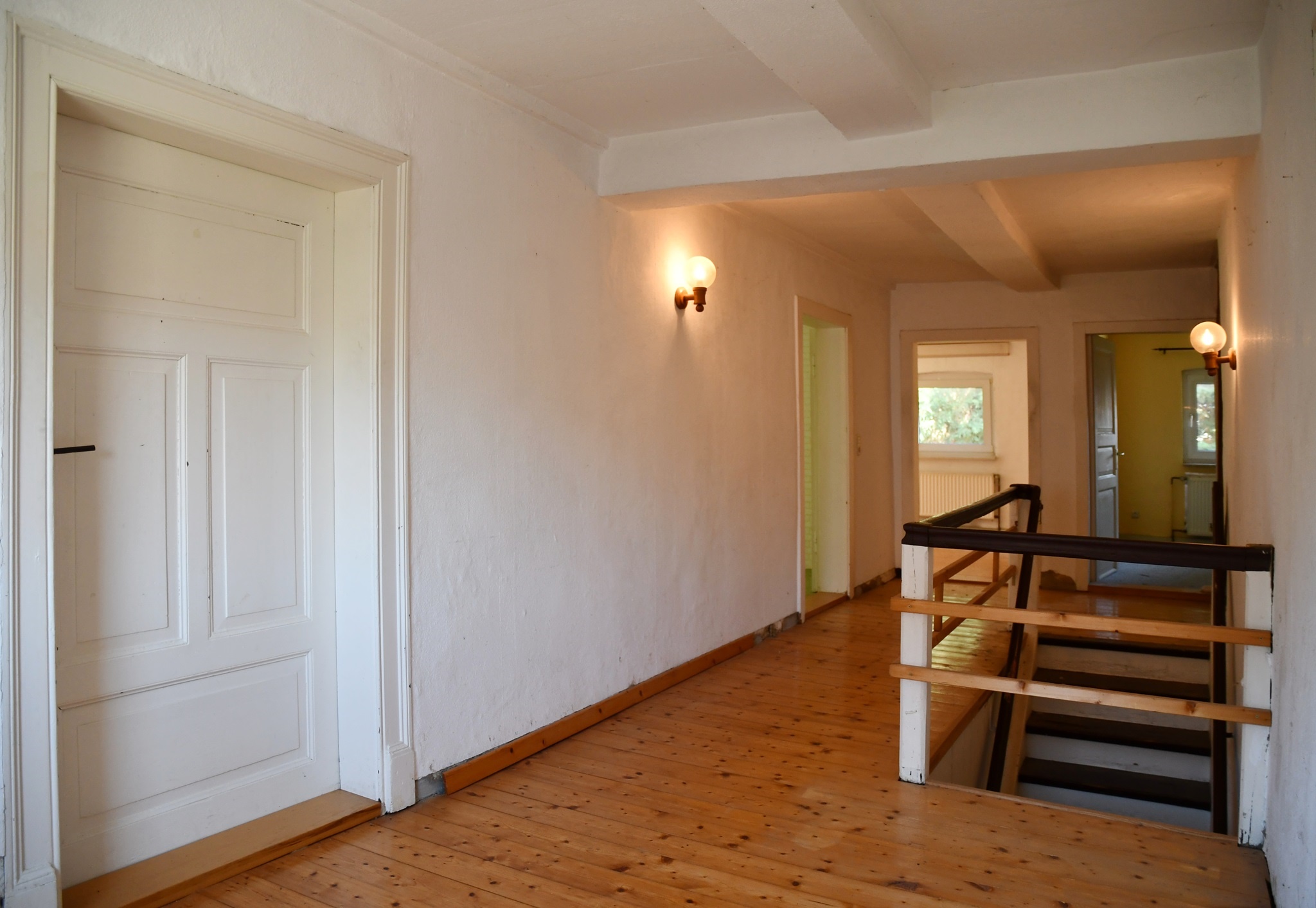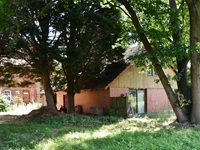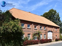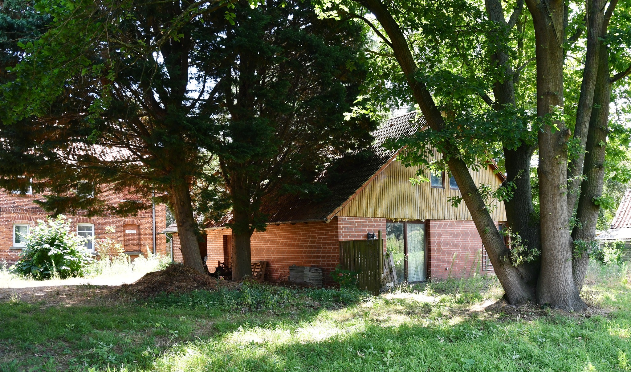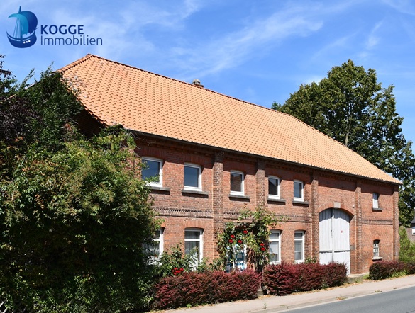 Im Sommer unter den großen Eichen sitzen und im Winter vor dem Kamin die Stille der Jahreszeit genießen, bei dieser Liegenschaft können Sie sich den Traum vom Leben auf einem historischen Restbauernhof erfüllen. Es umgibt Sie der besondere Charme von hohen Räumen, hellen Holzdielen, alten Türen und weiteren alten Baustoffen, die mit zu den besonderen Eigenschaften dieser Immobilie gehören. Zur Straßenseite steht das denkmalgeschützte zweigeschossige Haupthaus aus dem Jahr 1860 mit einer für das 19. Jahrhundert typischen Aufteilung in Wohn- und Stallteil. Eine Blau- Weiß gestaltete zweiflügelige Eingangstür mit Glaseinsatz, Kassettenfeldern und im unteren Bereich einer Fächergestaltung hebt den Wohnteil ab. Im Erdgeschoss gehen von der geräumigen Diele die Küche mit Zugang zum Esszimmer, das Wohnzimmer, ein Arbeitszimmer und Tageslicht-Badezimmer ab. Vom Esszimmer aus betreten Sie die seitliche Terrasse und den Garten. Die vorhandene Einbauküche, im hellen Landhausstil, bietet reichlich Stauraum und Arbeitsfläche mitsamt Ceran-Kochfeld und Dunstabzugshaube. Die hohen Räumen vermitteln eine großzügige Weitläufigkeit. Über das eher einfach gehaltene Treppenhaus erreichen Sie die Zimmer im Obergeschoss, wo Ihnen nochmals fünf Zimmer und ein Badezimmer zur Verfügung stehen. Von hier haben Sie einen Zugang zum Dachboden über dem Stall, der womöglich zu Wohnzwecken ausgebaut werden könnte. Idealerweise sind das Fachwerk, die Holzbalken und alten Ziegelwände im unverbauten Originalzustand, was die weitere Planung erleichtert. Darüber hinaus runden beim Haupthaus die isolierverglasten Fenster sowie solide Massivbauweise und Backsteinfassaden – in einer reduzierten Formensprache – das harmonische Gesamtbild ab. Diese Voraussetzungen erleichtern die Sanierungsarbeiten, um die Liegenschaft zukünftigen Wohnvorstellungen anzupassen.